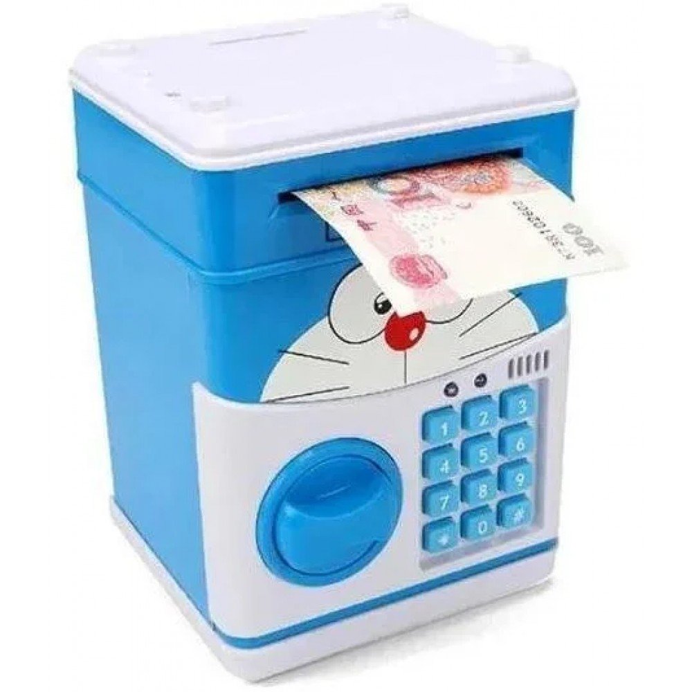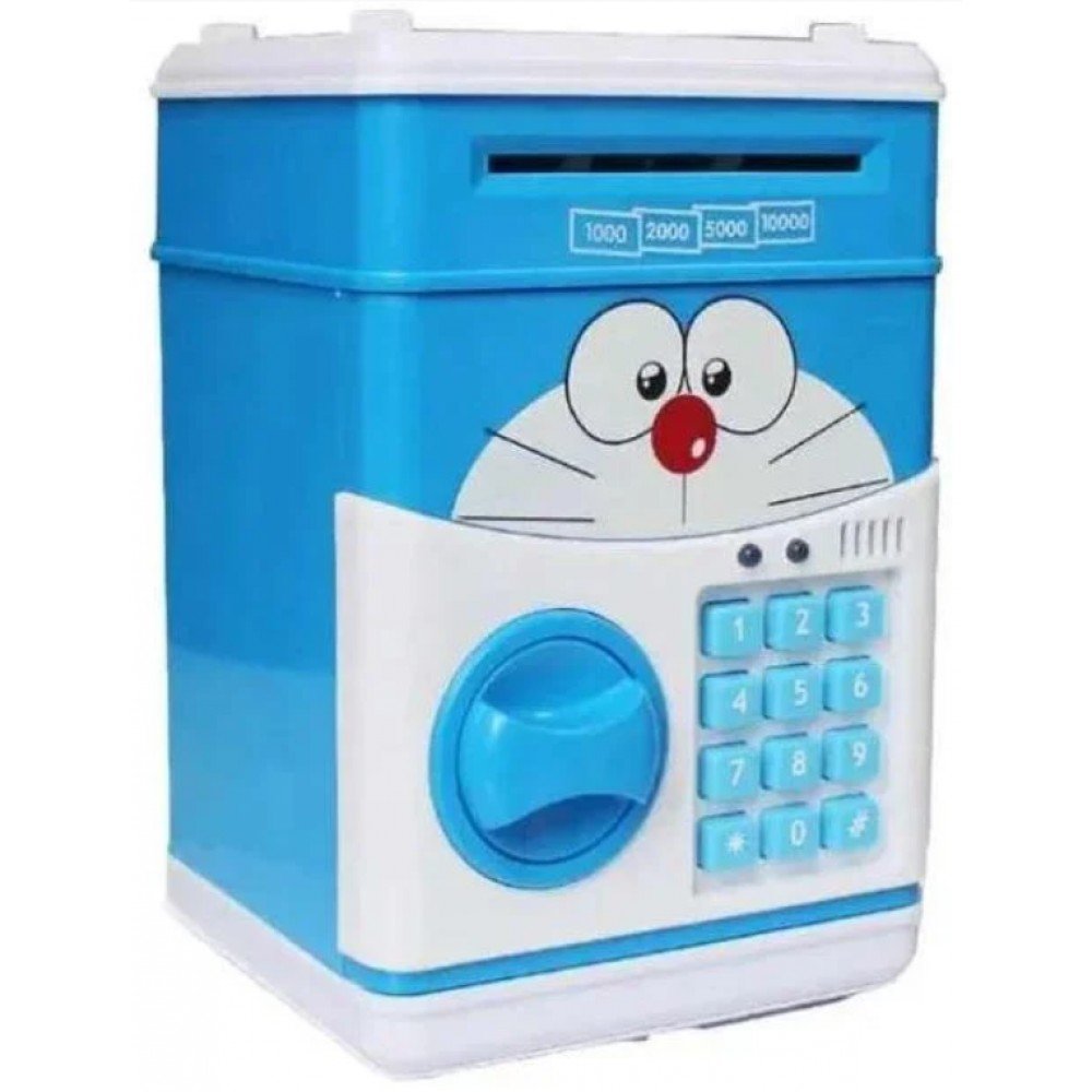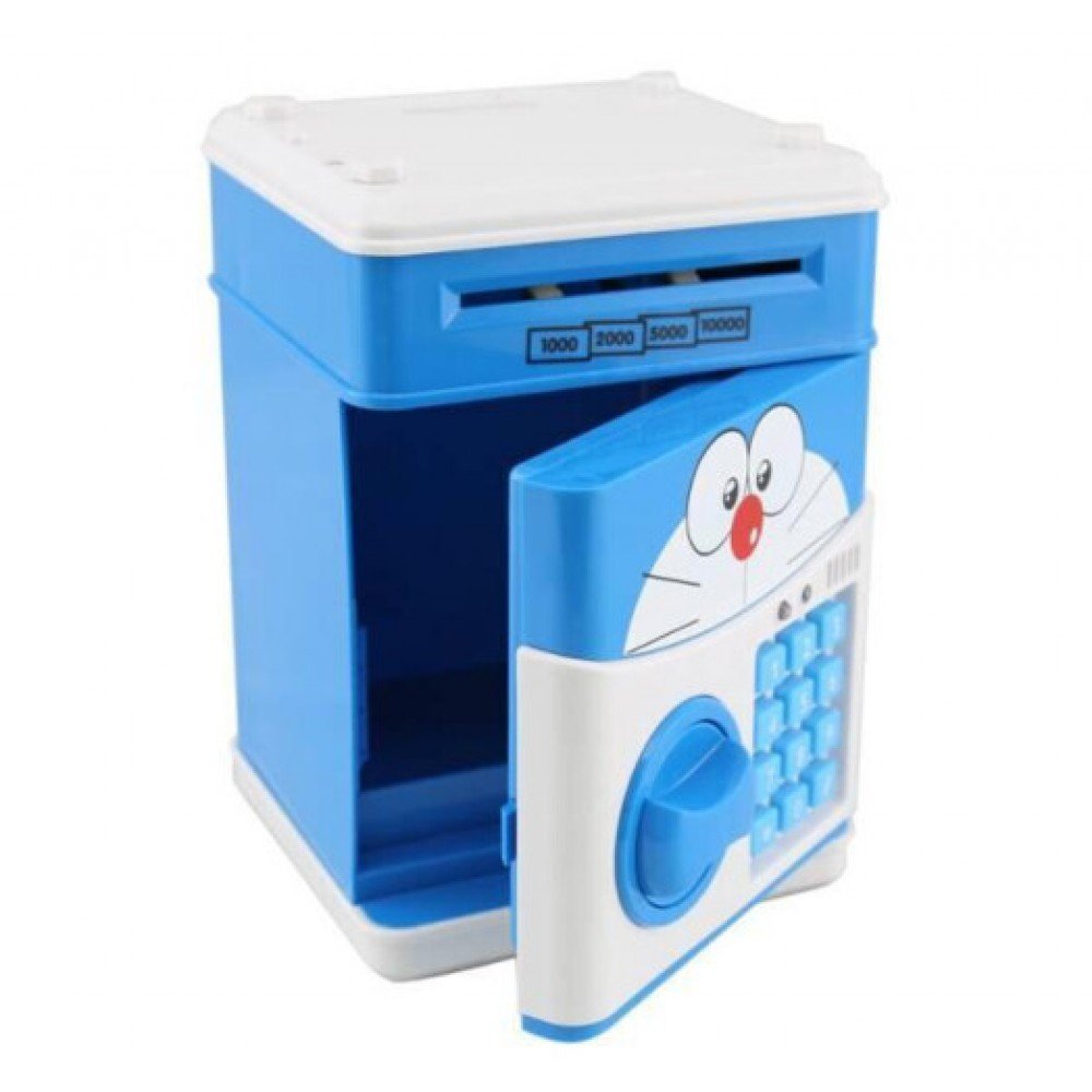 Детская копилка-сейф Кот Синий с кодовым замком и купюроприемникомЭта электронная копилка-сейф станет прекрасным подарком любому человеку, который хочет немного поднакопить и оставить это в секрете.Данная копилка-сейф оснащена специальным механизмом, который срабатывает при поднесении купюры к купюроприемнику и затягивает ее внутрь, помещая в основное отделение копилки. В верхней части есть прорезь для монет, которые собираются в специальный лоток и не смешиваются с купюрами.Как и положено настоящему сейфу, эта копилка имеет кодовый замок. Введите код, поверните ручку и она откроется. Если же вы вдруг забыли закрыть дверь, копилка напомнит звуковым оповещением, что дверца открыта.И не забудьте задать код доступа. По умолчанию это 0000. Чтобы игра получилась максимально реалистичной, стоит при запуске придумать собственную комбинацию. Достаточно удерживать * 10 секунд и услышать звуковой сигнал. Далее набираете четыре любые цифры и подтверждаете их #.Сейф оснащён самой настоящей системой безопасности: незакрытая дверца пищит, напоминая о себе. Если вы или ребёнок,позабыли код, а купюры достать необходимо, можете воспользоваться простым приёмом взлома. Для этого достаточно вынуть батарейки — это восстановит заводской код «0000».Поэтому смело дарите копилку-сейф и взрослым, и детям, которых хотите приучить к бережливости.Электронная копилка-сейф, это:Оригинальная копилка с кодовым замкомПрекрасный подарокНадежный способ хранить и копить деньгиДополнительные характеристикиРазмеры 19 х 13 х 13 смМатериал ПВХ, Пластик;Питание 3 батарейки типа АА;Вес: 800 г