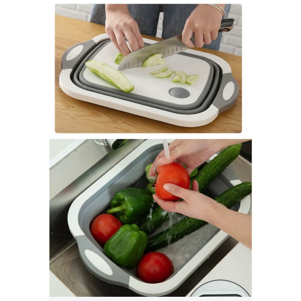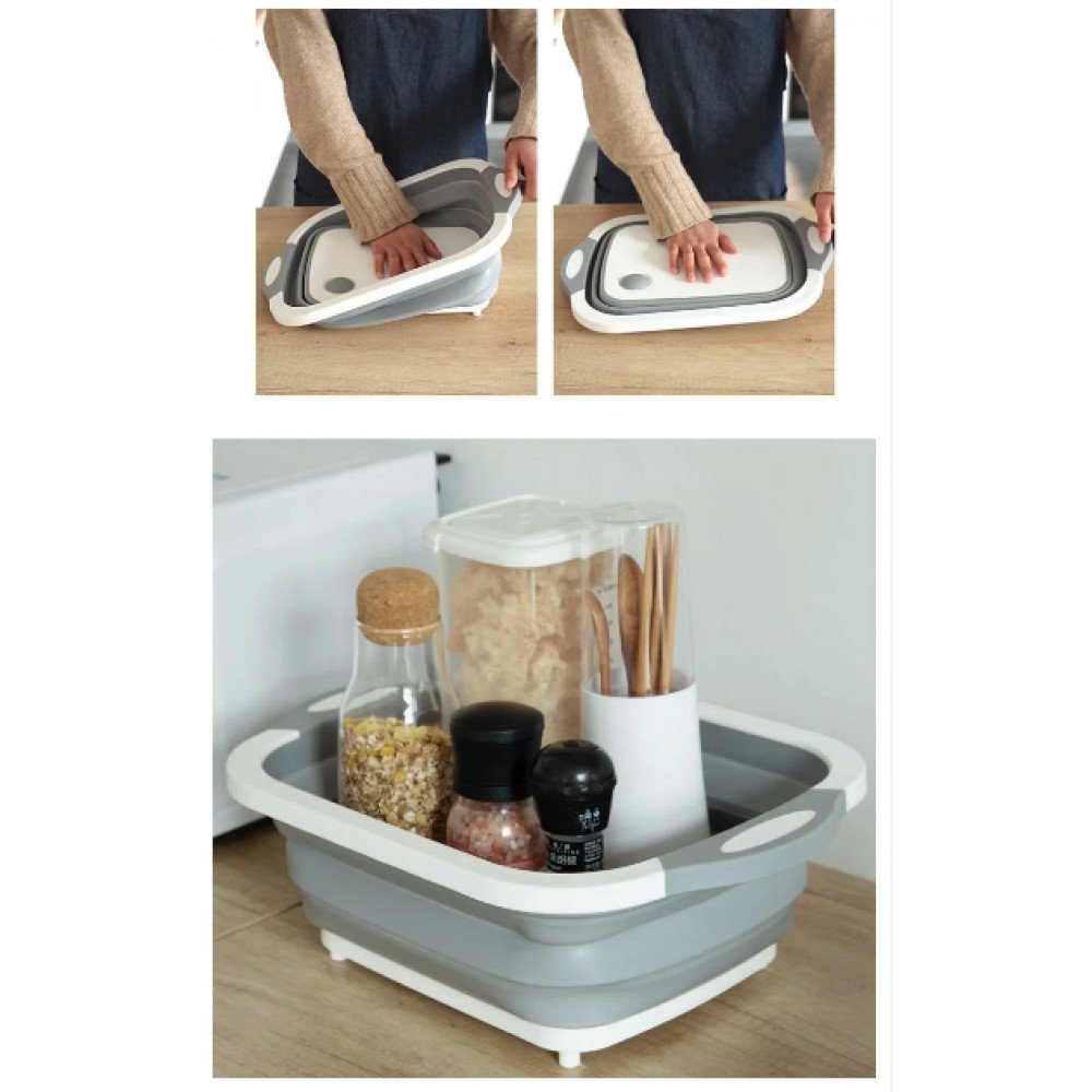 Качественная кухонная утварь пользуется спросом всегда. Ведь намного приятнее готовить еду, когда вокруг этому способствует атмосфера и условия работы. Вы точно не сможете пройти мимо доски для разделки продуктов Chopper, что может служить доской и одновременно миской.Chopper 3 в 1 будет служить кухонной доской для нарезки овощей и фруктов, мяса и птицы, сыров и колбас и даже хлеба. А потом Вы лёгким движением можете трансформировать доску в миску и дальше работать с продуктами. Разделочная доска 3 в 1 может стать очень удачной покупкой, которая позволит сэкономить Вам пространство в шкафу, время мытья посуды и денежные средства. Вы с помощью одного прибора можете "убить 2 зайцев": и помыть продукт и разделать его.В конструкции предусмотрены ручки для более удобного использования (переноски блюд / продуктов или, для того чтобы повесить на крючок доску). Доска-миска выполнена из материалов высокого качества, пригодных к работе с продуктами питание. Дизайн Chopper 3 в 1 современный и эргономичный, к тому же очень компактный в сложенном виде. Каркас доски сделан из прочного пластика, а складная часть для миски из плотного, но гибкого силикона. Материалы не впитывают запахи, не токсичны и экологически чистые, а цвет от продуктов питания не остается на доске. Также материалы стойкие к различным температурам. Доска-миска Chopper 3 в 1 представлена в комбинации белого и серого цвета.Миска Chopper служит отличным блюдом для сервировки салатов, фруктов и овощей на стол. И такую ёмкость можно использовать как органайзер для кухонных приправ, соусов и прочего.Доска со складной миской будет незаменимой на пикнике или в туристическом походе так как займет мало места и позволит хорошенько промыть продукты.Даже не сомневайтесь, что миска и по совместительству доска Chopper 3 в 1 приведет в восторг любую хозяйку. По этому смело покупайте ее на подарок по любому поводу, даже просто, чтобы проявить заботу о любимой маме, бабушке, сестре или жене. Параметры доски-миски Chopper 3 в 1:● Габариты в сложенном виде доски 40 см × 30 см × 3 см, ёмкость миски 20 см × 25 см × 14 см.● Есть отверстия для рук или что бы повесить доску на стену.● Материал: АВС пластик + силикон, не впитывает цвет и запахи, не содержит токсинов.● Цвет: комбинация белого и серого.● Устойчивые ножки миски, по рабочей поверхности не скользит.● Есть функция дуршлага.● Весит утварь всего около 600 грамм.Товар, доска 3 в 1 Chopper, поставляется в сложенном виде в целлофановой упаковке от производителя.