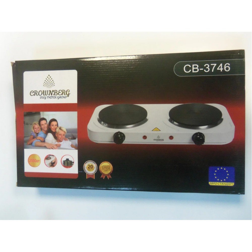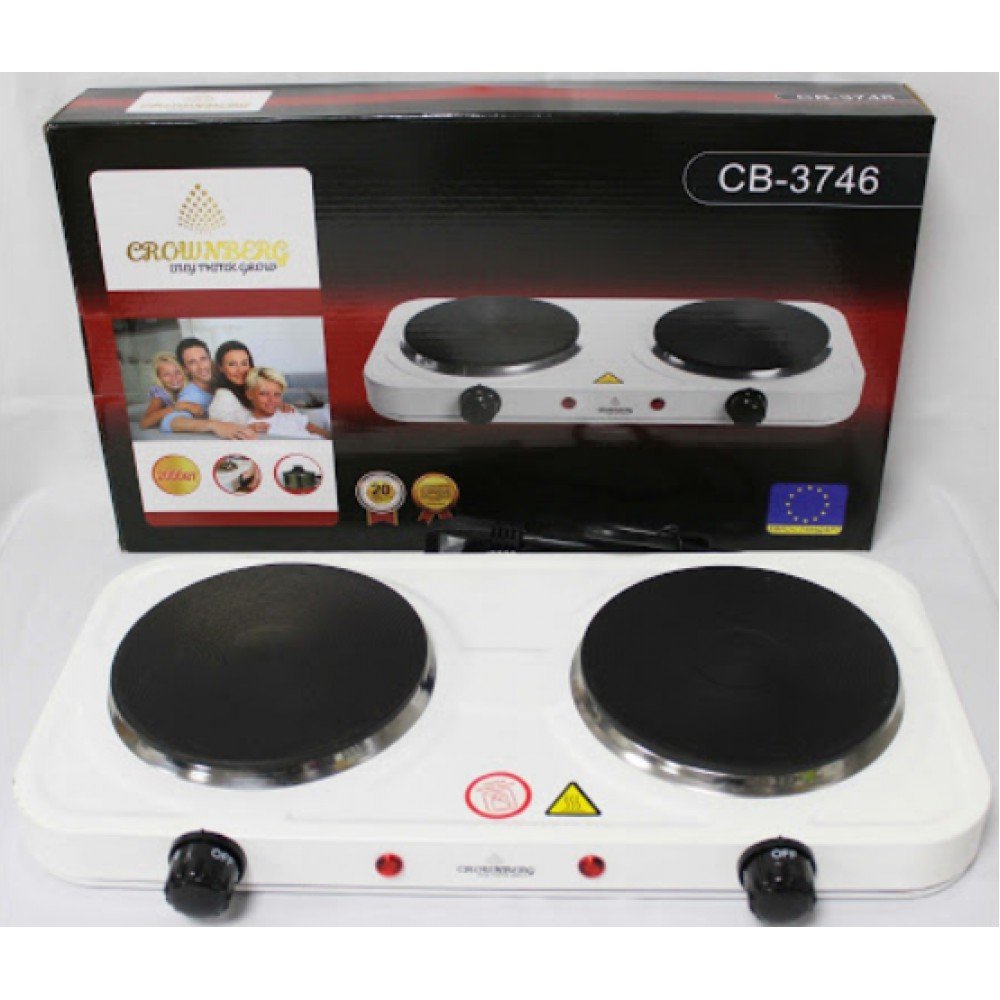 Плита электрическая Crownberg CB-3746 - станет отличной альтернативой большой кухонной плите, для которой нет места. Crownberg - CB-3746 - это экономия места, электроэнергии и бюджета. Дисковая настольная плита станет отличным решением для летнего дачного дома.Особенности электрической дисковой плиты Crownberg CB-3746: С помощью такого компактного кухонного прибора, как Crownberg CB-3746, вы сможете запросто приготовить себе еду на текущий день. Плиту Crownberg CB-3746 можно с легкостью транспортировать в любое подходящее место, ведь ее работоспособность зависит исключительно от наличия сети электропитания. Плита имеет две конфорки, со спиральным нагревательным элементом. Регулировать работоспособность плиты можно с помощью механического переключателя.Преимуществадисковой электроплиты: Эргономичный дизайн и компактность Регулируемый термостат Покрытие варочной поверхности изготовлено из нержавеющей стали Закрытая спираль Защита от перегрева Индикатор питания Высокие ножки с резиновым покрытием. Характеристики: Количество конфорок: 2; Регулируемый термостат; Световая индикация работы; Прорезиненные ножки; Покрытие рабочей поверхности: эмаль; Управление: механическое; Надежное покрытие, удобное для чистки; Размер плитки: 45 х 22 см; Диаметр дискового нагревательного элемента: 15,5 см каждый; Питание: 220V; Потребляемая мощность - 2 х 1000 Вт; Цвет: белый.Комплектация: Электроплита Упаковка - коробка