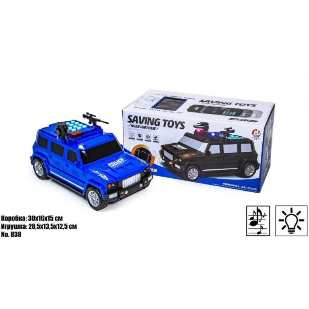 Сейф детский "Машина полиции" 589-13B интерактивная электронная копилка сейф Копилка Бронированный Банковский автомобиль станет прекрасным подарком любому человеку, который хочет немного поднакопить и оставить это в секрете.Данная копилка-машина оснащена специальным механизмом, который срабатывает при поднесении купюры к купюроприемнику и затягивает ее внутрь, помещая в основное отделение копилки. В верхней части есть прорезь для монет, которые собираются в специальный лоток и не смешиваются с купюрами.Как и положено настоящему сейфу, эта копилка имеет кодовый замок. Введите код, поверните ручку и она откроется. Если же вы вдруг забыли закрыть дверь, копилка напомнит звуковым оповещением, что дверца открыта.И не забудьте задать код доступа. По умолчанию это 0000. Чтобы игра получилась максимально реалистичной, стоит при запуске придумать собственную комбинацию. Достаточно удерживать * 10 секунд и услышать звуковой сигнал. Далее набираете четыре любые цифры и подтверждаете их #.Сейф оснащён самой настоящей системой безопасности: незакрытая дверца пищит, напоминая о себе. Если вы или ребёнок, позабыли код, а купюры достать необходимо, можете воспользоваться простым приёмом взлома. Для этого достаточно вынуть батарейки — это восстановит заводской код «0000». Поэтому смело дарите копилку-сейф и взрослым, и детям, которых хотите приучить к бережливости.Особенности:1. Автоматическая функция банкнот2. Пароль + Двойная разблокировка отпечатков пальцев3. Большая экономия пространства4. Классный светильник5. Множественные преобразования функций (повествование историй + размещение детских песен)6. Одна вещь для обоих целей (1. Накопительный бак 2. Игрушечный автомобиль)Параметры: Наименование товара: копилка; Материал: пластик; Размеры: 30,3*15,4*15,2 см.