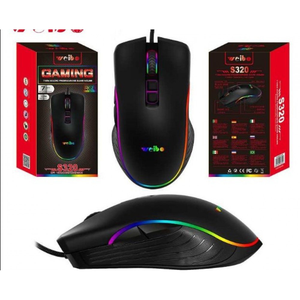 Игровая мышь Weibo S320 USBИгровая мышь Weibo S320 USB имеет довольно крупный корпус, и ее эргономика подойдет как для правши, так и для левши. Корпус мыши имеет широкое основание, у ножек низкий коэффициент трения. Черные боковые стороны гладкие, а плавники - задней части корпуса позволяют удобно разместить на них пальцы при охвате мыши.Игровая мышь Weibo S320 USB имеет длинный кабель подключения 1.8м в прочной обмотке, которая дополняет оригинальный и яркий дизайн мыши.Преимущества: Инфракрасный датчик с улучшенной точностью; Регулируемый DPI (1600/2400/3200/4800) Усиленный кабель длиной 1,8 м; Эргономичный дизайн - расширенное использование без усталости; Светодиодная подсветка;Основные характеристики: Тип датчика: оптический; Интерфейс: USB; Мышь имеет подсветку из семи цветов, которые меняются и создают эффект “дыхания”; Разрешение датчика: настраивается, DPI, 1600, 2400, 3200, 4800; Количество программируемых кнопок: 7.