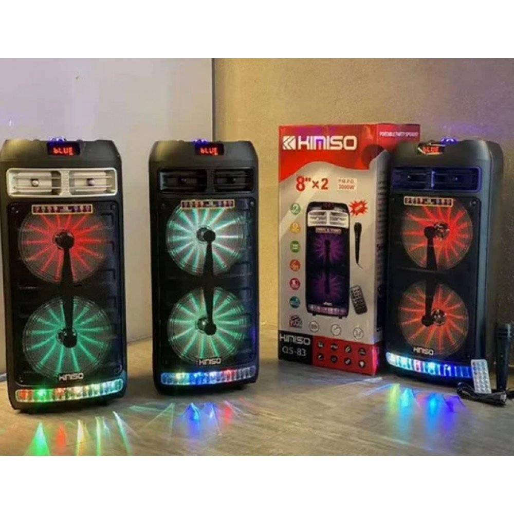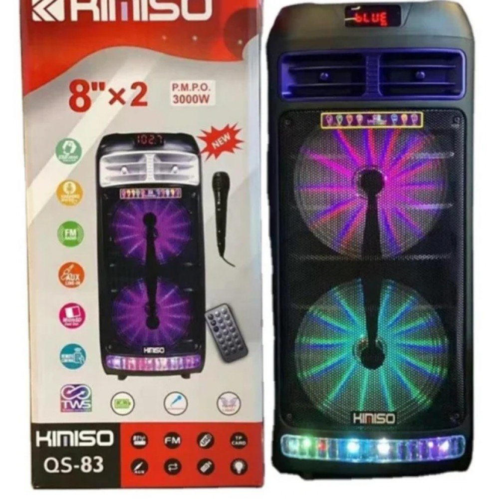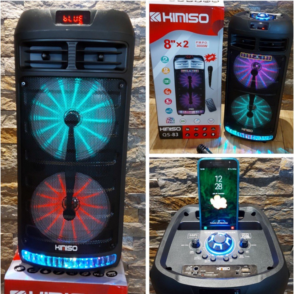 Легкая и функциональная колонка. Акустика имеет встроенный аккумулятор, что делает колонку полностью автономной.Портативная колонка-комбоусилитель Kimiso QS-83 оснащена всеми современными функциями: Bluetooth, радиоприемник, mp3-плеер, который считывает информацию с карт памяти и флешек. В комплекте к колонке прилагается проводной микрофон. Все управление находится на верхней панели, что очень удобно, если вы используете колонку как караоке систему. Управлять комбоусилителем можно не только с панели управления, но и с пульта дистанционного управления.Портативная колонка с FM-радио, USB, SD, Bluetooth, проводным микрофоном и пультом дистанционного управления, Kimiso QS-82, является идеальным аксессуаром для пикника, презентаций, вечеринок для детей, дней рождения или вечеринок и уличных мероприятий. Очень удобна в использовании: имеет функцию связи через Bluetooth и вход SD, USB, так что вы можете воспроизводить музыку из самых удобных и популярных носителей. Колонна выполнена из высококачественных материалов, а благодаря ручке можно легко носить её с собой в любое место. Индикация заряда акустики. Есть светомузыкальная подсветка (возможно Включать или Выключать) Проводной микрофон в комплекте. Цыфровой экран. Есть функцыя REC - возможность записи вашых пений на флешку или карту памяти!характеристики:. Тип: Портативная колонка Выходная мощность: 80 Ватт Диаметр сабвуфера: 8” 2шт + твитер Микрофон: Проводной Разъем для микрофона: Есть Приоритет микрофона: Есть Цветомузыка: Отключаемая Поддержка TF карт/USB Аудио вход: есть Разъем подключения микрофона для караоке (регулировка громкости, эхо) Bluetooth: Есть Диапазон работы: 10 метров Радиоприемник FM: 87,5 -108 мГц; Светомузыка: Отключаемая Поддержка TF карт/USB/Аудио вход/FM радио: Есть Пульт Д/У: Есть Воспроизводимые форматы: MP3 Режим TWS для беспроводного подключения 2х и более аналогичных колонок. Время работы батареи: 3-5 часов Время зарядки аккумулятора: 2-3 часа Габариты колонки : 60 х 26 х 23см; Габариты коробки : 62 х 28 х 26 см Вес: 4.4кгФункция :USB / TF / BT / FM / AUX / MIC / светодиодные фонариВхода: Микрофонный: 1 Jack 6,3 Вход AUX ― для подключения мобильных телефонов, ноутбуков, планшетов... USB для подключения Flash накопителя(флешек), MP3 плеера. Card Reader для подключения SD/MS/MMC ― карт. Bluetooth соединение.Регулировки Громкость общая Громкость микрофона Эхо микрофонаКомплектация: Колонка Kimiso QS-83 пульт ДУ, Микрофон проводной зарядное устройство, Коробка