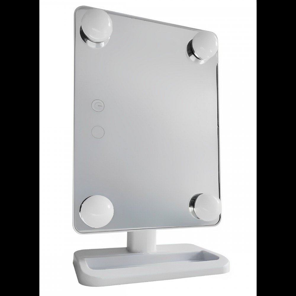 Описание Компактное зеркало с подсветкой для макияжа MCH Cosmetie Mirror 360 Rotation Angel с LED подсветкой для дома Белое (ul-8999)Зеркало с подсветкой для макияжа Cosmetie Mirror 360 Rotation Angel – необходимый атрибут каждой женщины вне зависимости от возраста и образа жизни.Зеркало для макияжа с LED-подсветкой - это отличный инструмент для нанесения макияжа и создания идеального мэйка. Яркие светодиоды обеспечивают равномерное освещение лица со всех сторон в любое время суток, что позволит вам равномерно нанести косметику, не допуская ошибок.Включить и выключить зеркало можно при помощи специальной сенсорной кнопки. Освещение работает за счет обычных батареек. Специальная подставка позволит разместить на ней различные косметические мелочи, например, губную помаду, пудру, тени для глаз или что-нибудь другое, а свободное вращение на 180° позволяет зафиксировать косметическое зеркало в удобном для вас положении.Зеркало для макияжа с LED подсветкой имеет изысканный, элегантный вид и украсит собой интерьер в доме.Преимущества: широкая отражающая поверхность; регулируемое вращение на 360°; светодиодная подсветка для качественного макияжа; сенсорное управление подсветкой; подставка для косметики и украшений.Характеристики: Масса: 532 г. Материал: ABS пластик, стекло Размер: 185х117х300 мм Длина: 24 см Ширина: 18 см Питание: 4 АА батарейки