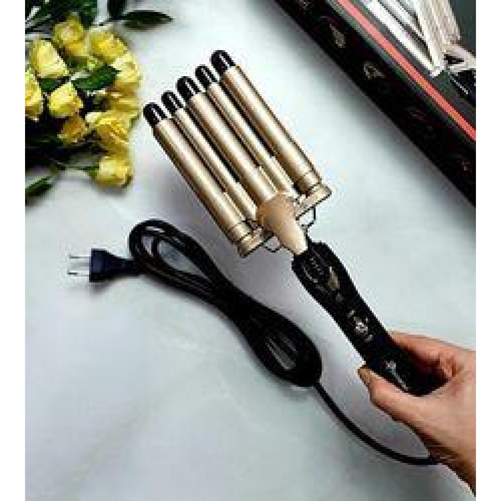 Плойка Волна Gemei GM 2933, Щипцы для завивки волос, гофре, плойка пять волн, накрутка волна Плойка Пять Волн Gemei GM 2933Прекрасная половина человечества зачастую задается вопросом - "как получить локоны имеющиеся у Голливудских кино див, звезд модельного и шоу бизнеса?". Наличие 5-ти волновой плойка щипцы для создания локонов полностью снимает данную постановку вопроса! Gemei GM 2933Плойка пять волн предоставляет вам возможность разнообразной укладки волос. Пользоваться таким инструментом легко и безопасно.Вы можете с её помощью создать роскошные волны или пышную шапку кудряшек. Потратьте всего несколько минут на укладку, закрепите её капелькой лака или геля, и у вас будет причёска на зависть любой голливудской звезде.Плойка 5 волнСовременная плойка пять волн поможет в домашних условиях иметь стильную прическу на волосах любой длины. Форма волос может быть как волнистой, так и в мелкие стильные кудряшки.Для удобства укладки волос «Gemei GM 2933» имеет керамическое покрытие, созданное на основе инновационных композитных материалов с хорошими параметрами теплопроводности и прочности. Описание щипцов для волосПлойка Щипцы«Gemei GM 2933» работает от привычной электросети 220 Вольт. Потребляемая за час нагрева мощность плойки составляет 65 Ватт.В конструкции учтена возможность укладки волос различной толщины и объема. Для этого прибор снабжен регулятором температуры рабочей части. Рабочий режим предусматривает разогрев плойки в диапазоне 180 - 220 градусов.ОсобенностиРучка прибора выполнена из электрически нейтральных материалов, имеет антискользящую поверхность Soft Touch.При хранении прибора удобно воспользоваться фиксатором.Диаметр направляющих плойки составляет 17 мм.Шнур механизма гибкий, выполнен из особо прочного и экологически безопасного полимерного материала. Вилка прибора имеет удобную эргономичную форму. Технические характеристики плойки Gemei 2933: Работает от сети в 220 Вольт; Имеет керамическое покрытие; Потребляет мощность 65 Ватт; Регулировка температуры 180 - 220 градусов Диаметр 17 мм