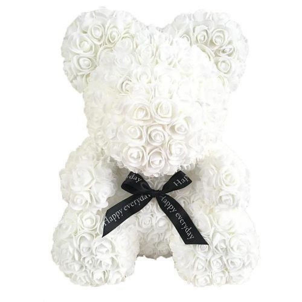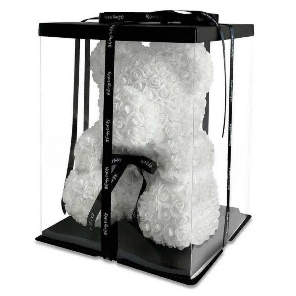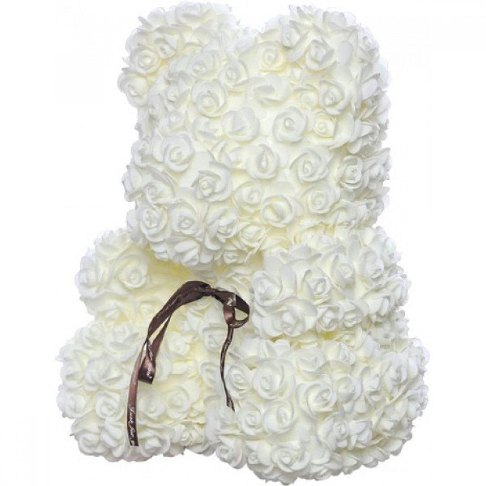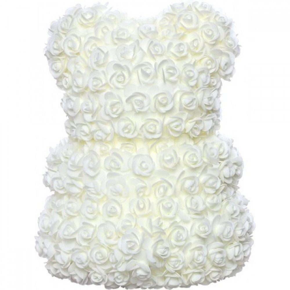 ОПИСАНИЕ ТОВАРАМишка из роз 3D с бантом 25 см - новинка года, игрушка-подарок, которая станет украшением любого праздника.Мишка сделан из эластичного, мягкого и очень приятного на ощупь материала.Цветы выглядят очень реалистично!Игрушка не повреждается при падении или сильном обьятии, материал не теряет свою форму.Также ему не страшно попадание влаги.Данный товар популярен круглый год. Назначение: подарок на День рождения, свадьбу, годовщину отношений, Новый год, 14 февраля, 8 марта. Их массово используют для украшения помещений для банкетов и фотосессий.Товар высокомаржинальный и хорошо зарекомендоваший себя. ТЕХНИЧЕСКИЕ ХАРАКТЕРИСТИКИОсновные Размер 25 см Материал фоамиран (пластичная замша), текстиль, пенопласт Доступные цвета белый Вес брутто, г 850 г Размер упаковки 25 смКомплектация Комплектация: Мишка, лента, подарочная коробка в разобранном виде