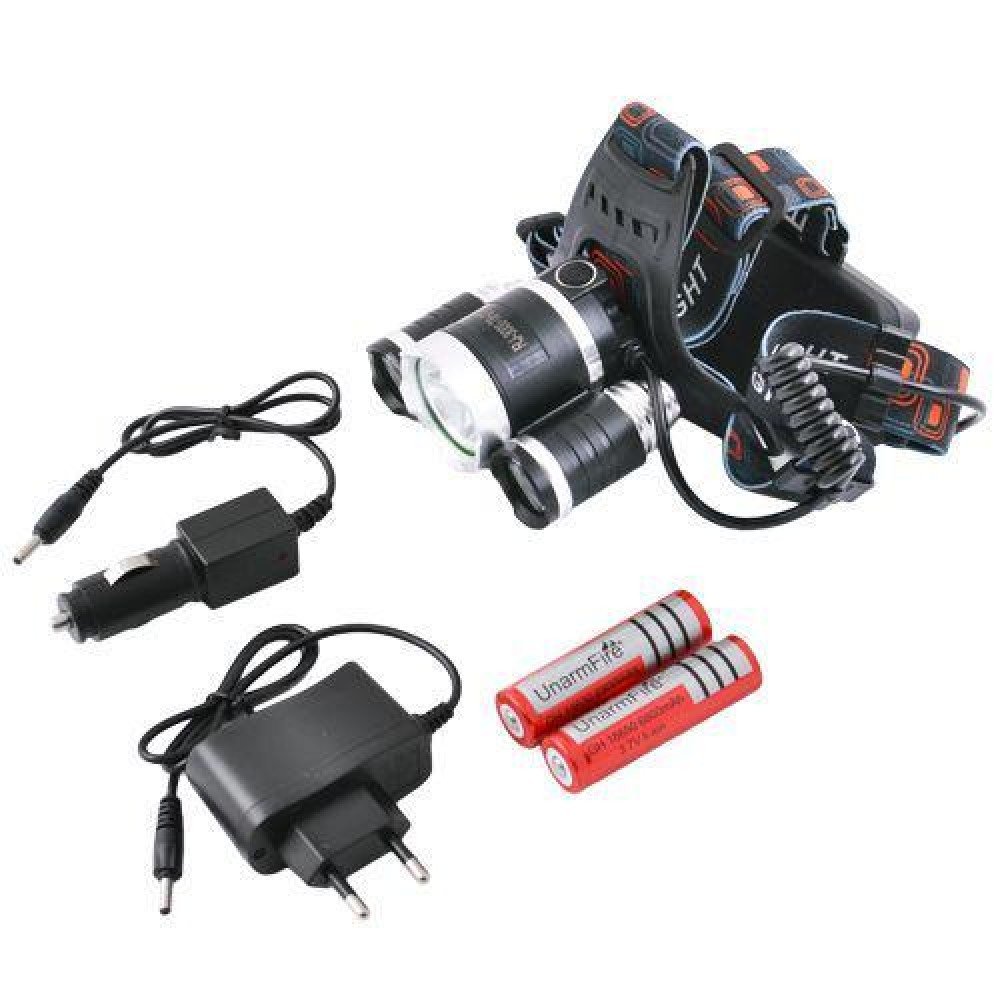 Мощный налобный фонарь с тремя светодиодами и возможностью переключать их свечение в разных вариациях. Один светодиод T6 дополняют два поменьше типа XPE от того же производителя. Благодаря вынесенному на затылок отсеку с аккумуляторами удалось достичь хорошего равновесия, ведь сам по себе строенный фонарь слегка отягощает лоб. Вес аккумуляторов на затылке удачно компенсирует этот нюанс и повышает комфорт при использовании фонаря. Крепление на голову состоит из двух широких прорезиненных ремешков, есть возможность регулировать их длину. Налобный фонарик может менять угол вверх-вниз, до 90 градусов. Таким образом, можно направить свет как прямо себе под ноги, так и перед собой. Питание налобного фонаря обеспечивают два аккумулятора типа 18650, а их подзарядка осуществляется с помощью зарядного устройства в комплекте. Зарядка подключается к аккумуляторному отсеку через закрытый резиновой заглушкой разъем. Брызгозащищенный корпус позволит пользоваться фонарем и в небольшой дождь. Кнопкой включения можно переключать режимы свечения: только основной светодиод T6, только дополнительные XPE, все вместе и мигание (все три шт.). Характеристики: 3 светодиода: 1шт T6 и 2 шт XPE Материал корпуса: анодированный алюминий Питание от двух Li-ion аккумуляторов 18650, 8800 mAh 3,7V (заявлено производителем) Один световой Т6 модуль диаметром 37 мм. И два модуля диаметром 23 мм каждый Регулируемая длина ремней Регулируемый наклон фонарика Выносной блок для аккумуляторов со световой индикацией Фокусировка луча: нет Количество режимов: 4 (1 диод, 2 диода, 3 диода, стробоскоп 3 диодов) Вес без аккумуляторов: 193 г Комплектация: Фонарик налобный RJ 3000 T6 2 Аккумулятора Li-ion 18650 Зарядное устройство от сети 220V Зарядное устройство прикуривателя Коробка