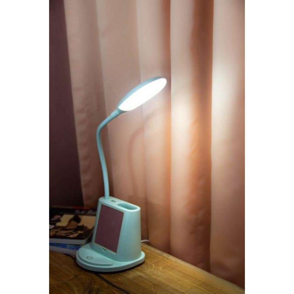 Описание Настольная лампа с зеркалом yw9070 и USB выходом для зарядки телефона ГолубойНастольная светодиодная лампа с зеркалом yw9070 подставка для телефона и USB выходомСветодиодная лампа yw9070- это идеальный выбор в плане освещения, дизайна и функциональности. Прекрасно впишется в Ваш интерьер и станет любимым гаджетом у Вас на столе. При одиночном касании на сенсорную кнопку можно включить или выключить лампуПлафон имеет очень гибкую ножку, что позволяет направлять световой поток в любом удобном Вам направлении. Лампа очень компактная и устойчивая и не занимает много места на столе, так же имеет удобный органайзер для ручек и еще может использоваться как подставка для телефона.Главной отличительной особенностью лампы является встроенный аккумулятор на 1200mah, что позволяет перемещать ее в любое удобное для Вас место и использовать при отключениях света в доме. Автономная работа до 10 часов на одном заряде аккумулятор в зависимости от яркости и типа светового потока. Питание и зарядка осуществляется через MicroUSB разъем (в комплекте идет MicroUSB кабель). Также у лапы есть USB выход 5V который может использоваться для зарядки Вашего телефона, вентилятора или другого гаджета.Характеристики: - Мощность лампы - 3 Вт; - Питание и зарядка: MicroUSB 5V; - Изменение спектра светового потока: есть; - Режим работы: 1 - Угол рассеивания: 120°; - Световой поток: 500 Лм; - Вес: 230гр. - Автономная работа: 6 - 10 часов; - Время полного заряда 3 часа; - Емкость батареи: 1200Mah; - Выход: USB 5V 1A; - Материал: ABS пластик;Комплектация: Лампа yw9070 MicroUSB кабель Инструкция Коробка
