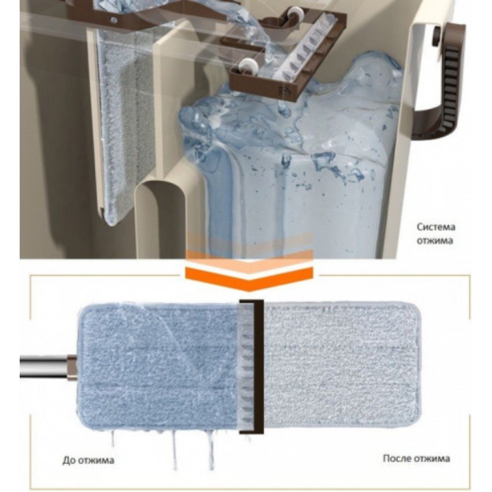 Швабра с ведром с автоматическим отжимом Easy Mop| Комплект для уборки Чудо-швабра и ведро с отжимомКомплект для уборки EasyMop – простое решение всех бытовых проблемИдеально чистый пол Никаких разводов и лишней воды. Идеально чистый пол за считанные минуты Уборка с комфортомИзбавит от тяжелой необходимости двигать мебель, чтобы добраться до труднодоступных участков Инновационная очисткаОснащен системой полоскания и отжима, позволяющей полностью удалять грязь с насадок ГигиеничностьАнтибактериальная сушка в вертикальном положении избавит вас от вредных бактерийКомплект для уборки EasyMop обеспечит Вам идеально чистый пол за считанные минуты! ПОДРОБНЕЕ о комплекте для уборки EasyMop Комплект EasyMop - кардинальное решение всех бытовых проблемУборка в доме — это всегда "праздник". В переносном смысле, конечно же. Эта процедура занимает целый день, а через несколько суток становится опять грязно. Ну а самой грязной и трудно поддающейся очищению поверхностью является пол. Поэтому перед многими хозяйками часто стает вопрос о том, как мыть пол, чтобы на нем не было разводов, чтобы он сверкал и не пачкался.Представляем Вашему вниманию универсальное средство, которое всегда будет в тренде — швабра и ведро с отжимом и полосканием.Особенности комплекта для уборки EasyMopУникальная система отжима Самоочищающиеся ведро Легко проходит под мебелью Вертикальная сушкаХорошо удаляет шерсть животных и волосы Сменные насадки из микрофибры Управляемость на все 360° Быстро и просто разбираетсяПользовать комплектом для уборки EasyMop очень просто!Шаг 1Налить воду в отсек для полоскания Шаг 2Ополаскивание швабры Шаг 3Отжим швабры в отсеке для отжимаШаг 4Слив воды через сливное отверстиеХарактеристики: Размеры ведра: 370х210х180 мм Объем ведра: 8 литров Материал: металл, качественный пластикКомплектация: Швабра Ведро - самоочищающийся контейнер Две насадки из микрофибры Упаковочная коробка