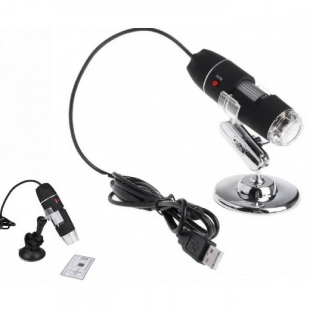 Цифровой микроскоп USB Digital Microscope zoom с Led подсветкой Специальная цифровая лупа – микроскоп может применяться в разнообразных сферах, где нужно проведение точных и сверхточных работ, их фото- и видео- фиксация:· в ювелирном деле;· в точной механике;· в ремонте электротехники и электроники;· в граверных работах;· в криминалистике;· в косметологии и многих других сферах. Кроме того, такой недорогой, но функциональный прибор может применяться в учебных заведениях для демонстрации физических, химических, биологических и др. опытов широкой учебной аудитории. В связи с его относительно невысокой ценой, может с успехом пользоваться в качестве подарка детям и подросткам для обеспечения их разнообразных хобби и другой познавательной деятельности. Прибор представляет собой качественную цифровую видеокамеру с хорошей оптикой и точным механизмом изменения фокусного расстояния (оптического увеличения), установленную на устойчивом металлическом штативе-подставке, с возможностью регулирования положения камеры в двух плоскостях. Высота прибора – 112 мм, ширина стойки – 33мм. Общий вес – 159 г. Цифровая видеокамера с разрешением 2,0 MРix способна выдавать цветное видео формата AVI с разрешением 640х480 рix и частотой кадров 30 fps, или фотоснимки формата BMP/JPG разрешением до 2560x1920 рix. Объектив видеокамеры с изменяемым фокусным расстоянием (оптическим «зуммом») от 15 до 40 мм, совместно с цифровым «зуммом» обеспечивает увеличение прибора в диапазоне 50х – 500х. Видимость деталей препарируемого объекта и четкость картинки улучшается за счет наличия встроенной светодиодной подсветки из 8 светодиодов. Подключение прибора к компьютеру (ноутбуку) выполняется с помощью кабеля (интерфейса) USB 3.0/2.0/1.1. Перед его подключением требуется установка на ПК драйверов и сопутствующего программного обеспечения с CD диска (имеется в комплекте). Электропитание прибора (рабочее напряжение 5В) обеспечивается также по кабелю USB. В комплект поставки входят:· цифровая камера – микроскоп с USB кабелем подключения/питания;· стойка-штатив;· CD диск с установочными драйверами;· калибровочная линейка.