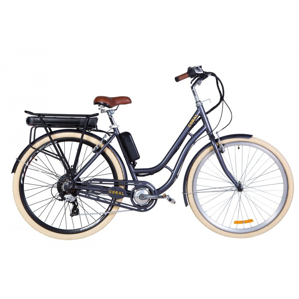 Электровелосипед 28" CORAL трещ., 500Вт 36В редуктор. задн.привод, 17.5Ач LG M3500 с крепл. к багажн., дисплей, макс.пробег 70км, 40 км/ч