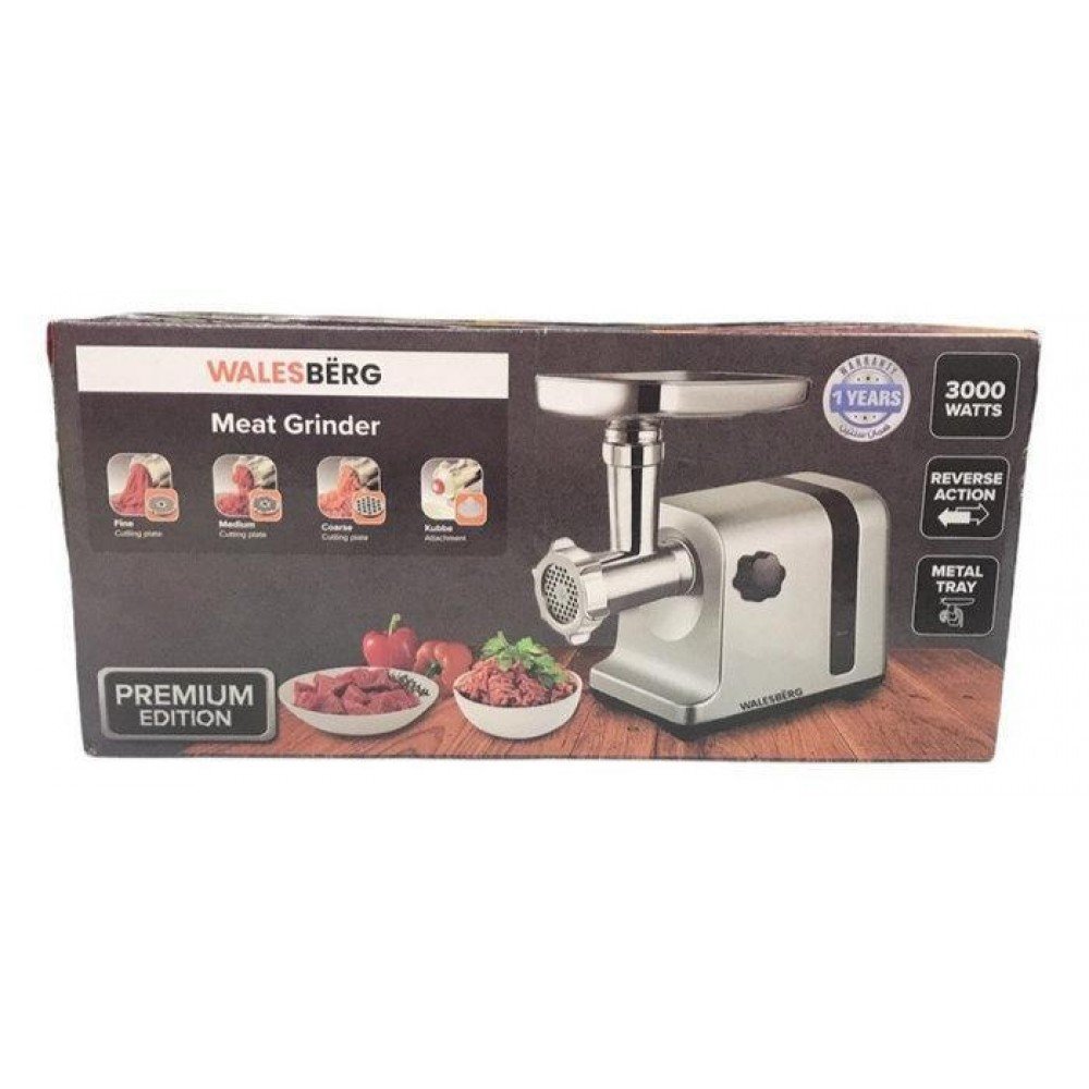 Характеристики и описаниеМясорубка Welesberg WB318 поможет значительно упростить процесс измельчения ингредиентов для различных блюд. В комплектации предусмотрены 3 стандартные решетки с отверстиями различного диаметра для различной степени помола мяса. Мощность модели составляет 3000 Вт. Благодаря этому в течение минуты можно измельчить до 1,7 кг продуктов. Съемный крестообразный нож с титановым напылением автоматически устанавливается в оптимальном положении и не нуждается в дополнительном затачивании.Благодаря толкателю, который позволяет протолкнуть мясо ближе к ножу, мясорубка Welesberg WB318 абсолютно безопасна в эксплуатации, а реверсивная система позволяет быстро и легко освободить нож от намотавшихся жил. Прорезиненные ножки исключают риск скольжения модели по поверхности кухонного стола.Комплектация и характеристики: Мощность: 3000Вт Количество решеток: 3