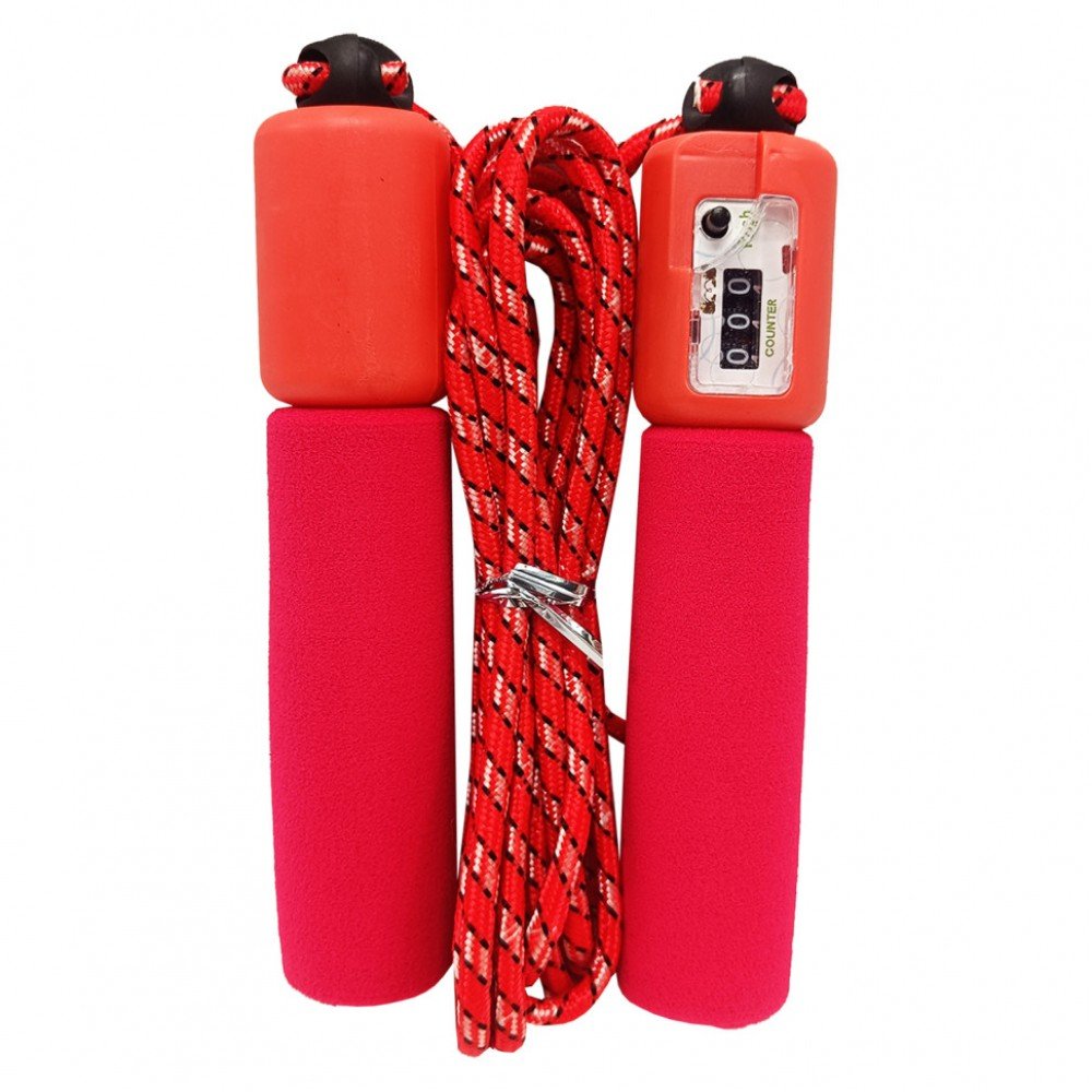 Скакалка спортивная со счетчикомМатериал ручек: пластик с мягким покрытиемМатериал веревки: нейлонДлина веревки: 280 смСчетчик механический, встроенный в ручку скакалки, подсчитывает количество прижков- оборотов. Легко регулируемая длина веревки.